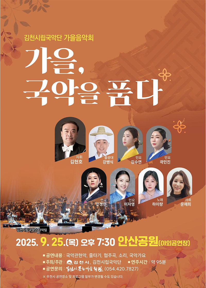 김천시립국악단 가을음악회 <가을, 국악을 품다> - 김천시 율곡동 (김천혁신도시) 안산공원 [2025.09.25.(목) 19:30]