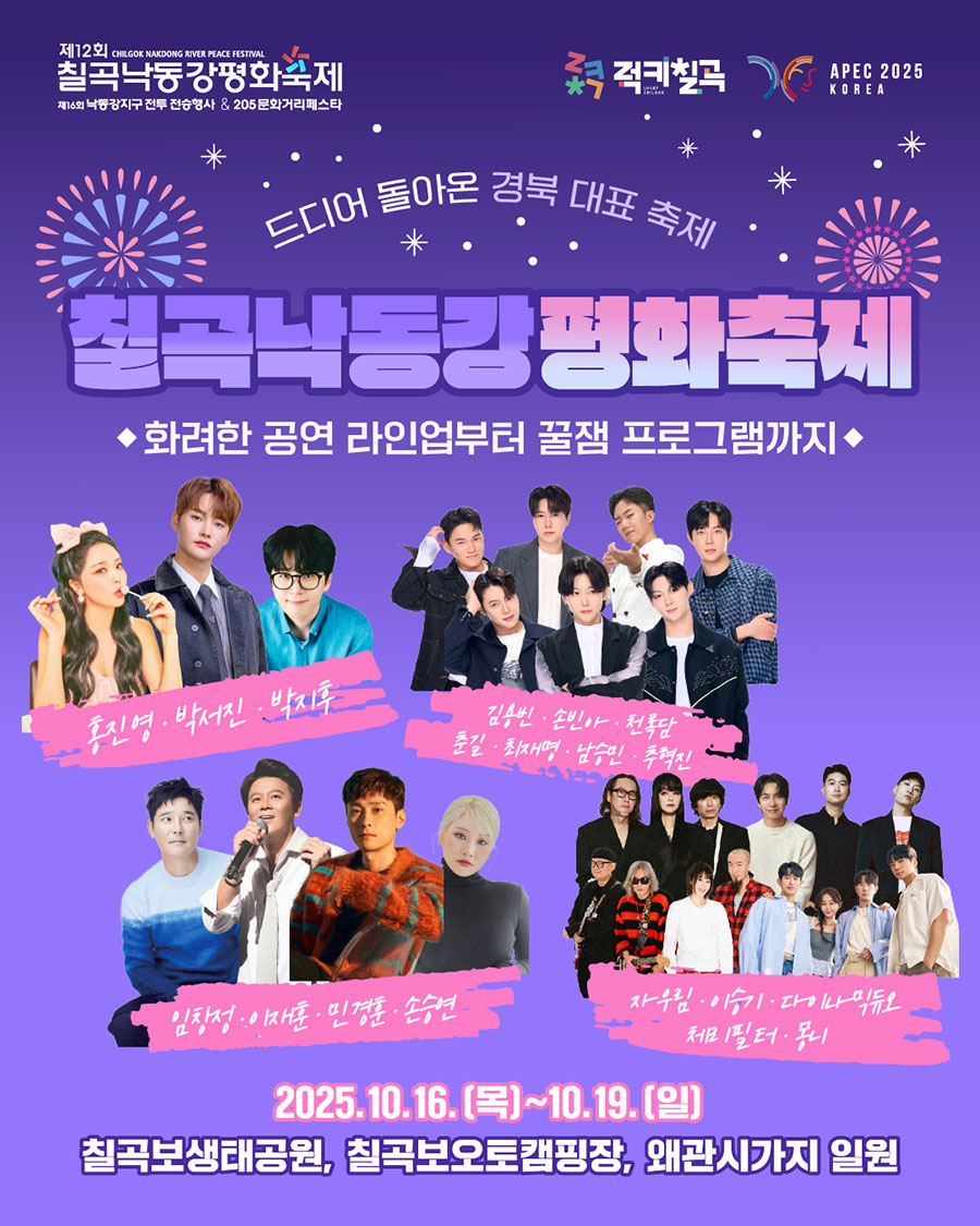 2025 칠곡낙동강평화축제 일정 가수라인업 주차장 안내 경북 대구근교 가볼만한곳 여행
