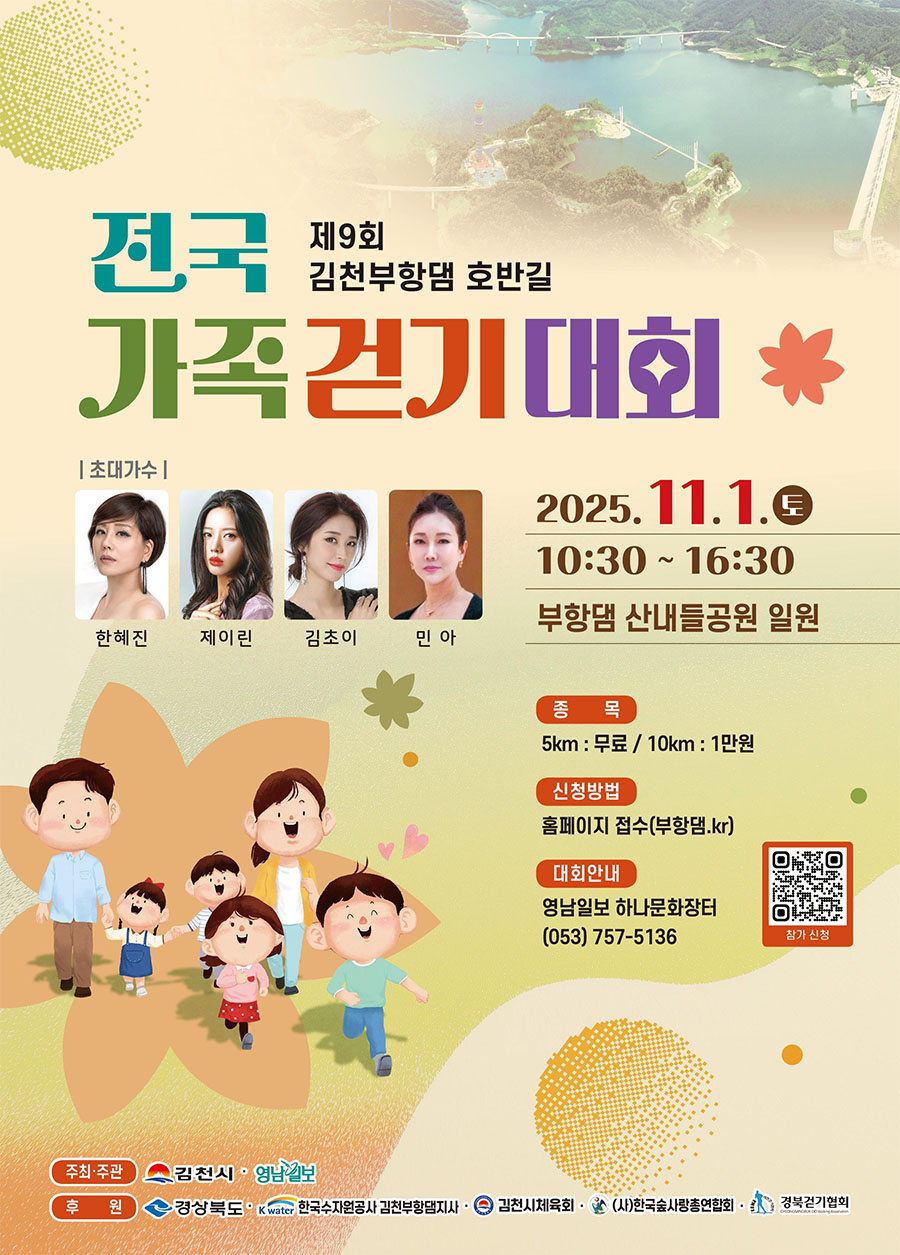 2025 제9회 김천부항댐 전국가족걷기대회 (초대가수 한혜진 제이린 김초이 민아) - 부항댐 산내들공원 일원 [2025.11.01.(토) 10:30~16:30]